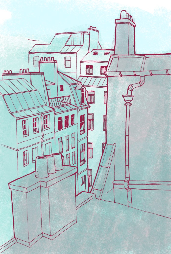 Cityscapes have been a long standing gap in my range of skills, partially because they take a lot more planning and references then just a quick character sketch. Perspective and scale has to be applied, windows have to align, and foreground, middle-ground, background, and all that good stuff has to be accounted for. Although it definitely taxed my patience at times, I feel my efforts paid off handsomely in this case, with the line-based, monotone style successfully evoking the midcentury look that I was going for. Next time around I’ll be adding higher contrast to the colored shadows, more detail, and maybe even some human figures. To be continued . . .