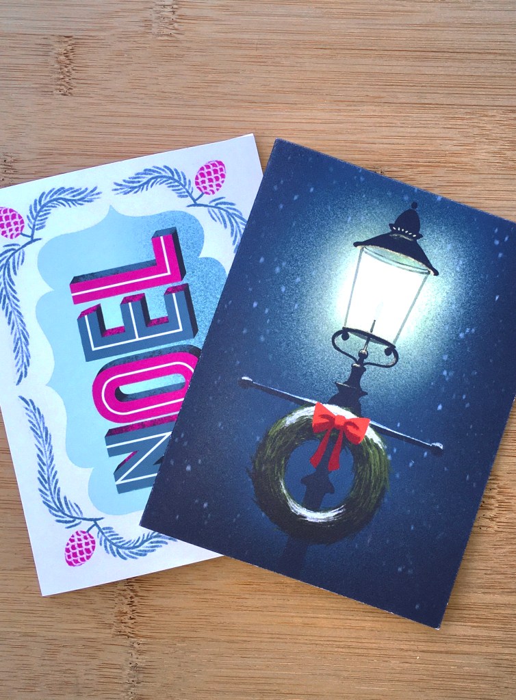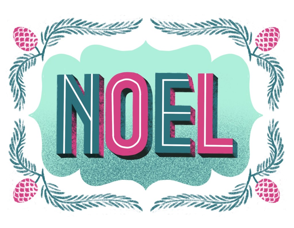 Two Christmas cards that I’ve designed using Procreate. Some of you may have received one or both in the mail in the last couple of years! The gas lamp is a deep dive into what I jokingly refer to as “Cozy Christmas Schlock,” in the Currier and Ives tradition; what other time of year can you get away with such blatant sentimentality? For the the other one, I did something more in my usual vein featuring a playful midcentury type treatment.