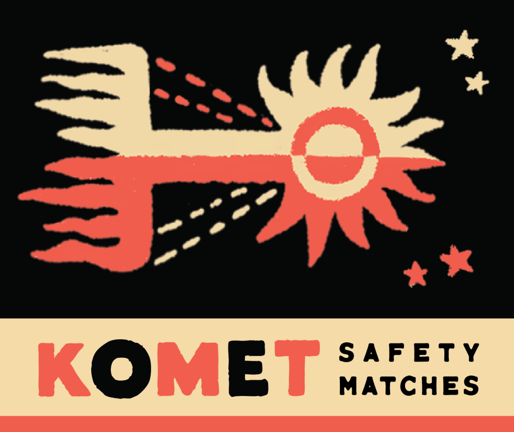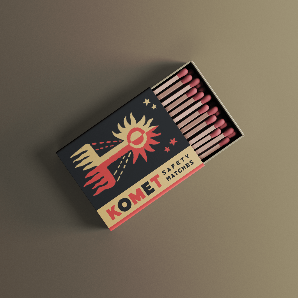 Finally getting into the photoshop template game, and wishing that I’d made the effort sooner! This beauty is a combination of two elements: the comet itself is based on the medieval depiction of Halley’s comet, from the Bayeux Tapestry, and the overall style is based on Eastern European matchbook art from the fifties and sixties. An extremely satisfying and enjoyable project to carry out. I’ve always been intrigued by this very stylized way of drawing a comet, and felt that it would be perfect for a fifties//sixties treatment. Three-color pallets are also my favorite, and this project gave me an excuse to use my absolute favorite combination. Hat tip to https://www.graphicpear.com/ for the free mockup template.