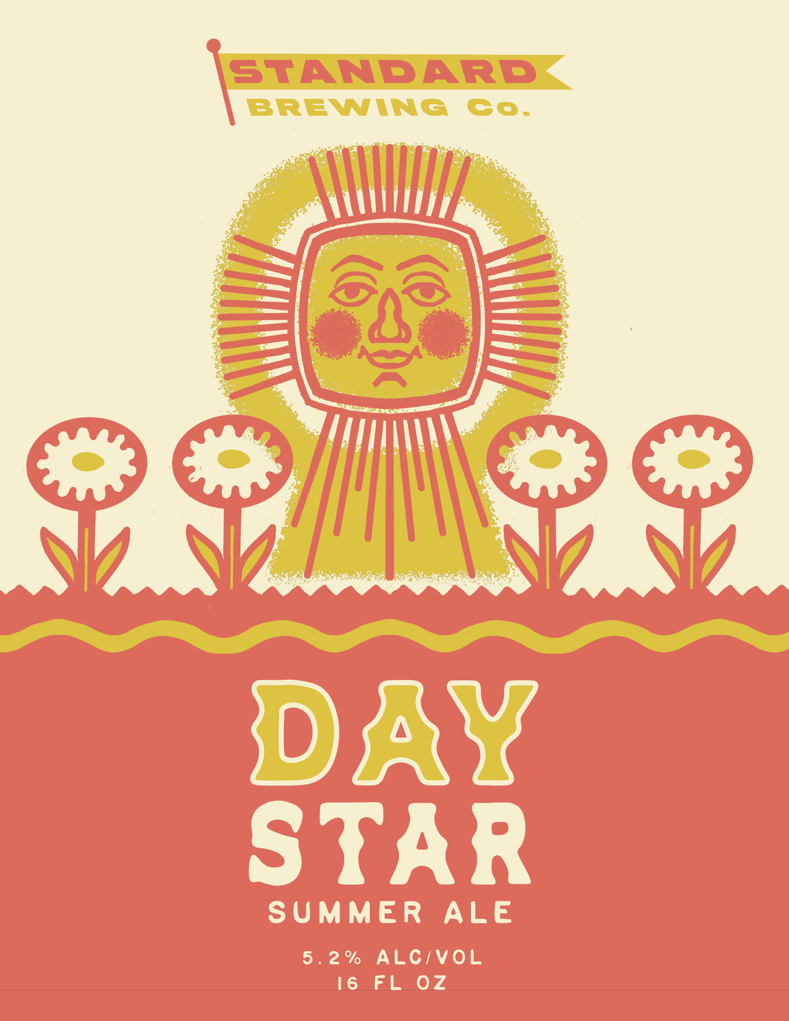 Beverage labels have always an interest of mine. Living here in Portland, you can see some amazingly creative beer can graphics, especially coming from the local breweries. There’re two schools of brand design in this regard; Most feature the logo taking center stage, while the smaller ones minimize the branding in favor of elaborate illustrations, sometimes featuring wildly different styles from different artists. It should come as no surprise that this would appeal to me as a brand project! To get started, I decided to create fairly low-key brand identity with a variable palette that could elegantly fit on the top margin of a beer can and allow the illustration work to take center stage. I think of the brand like a solid, blue collar dad,, surrounded by his colorful, countercultural children, all with radically different personal styles and vibes, but still sharing a common family resemblance. And what could be more blue collar than “Standard?”