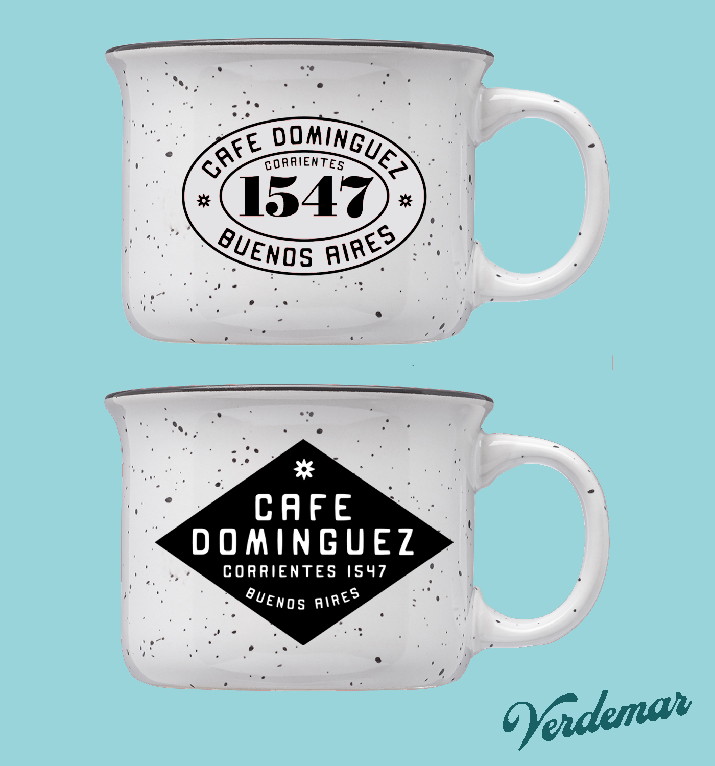 Two early mockups of a custom camp style mug. Cafe Dominguez was a famous coffeeshop that existed in Buenos Aires during the golden age of tango, and was the favored hangout spot of many well-known composers and musicians. The cafe even inspired its own tango song, but eventually faded into history some time in the fifties or sixties. I wanted to create something that paid homage to the song and the place– the top one features the historic street address prominently, and is inspired by traditional metal address plates in Buenos Aires. Like I described earlier, I wanted to create something inspired by tango lore, for tango dancers, but that exists as a beautiful object in its own right for anyone to enjoy. I feel this project was a definite success in this regard.